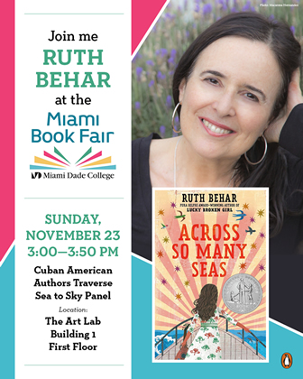 Ruth will be teaching an intensive workshop on writing the middle-grade novel as part of the Miami Book Fair’s yearlong events. Registration is now open.